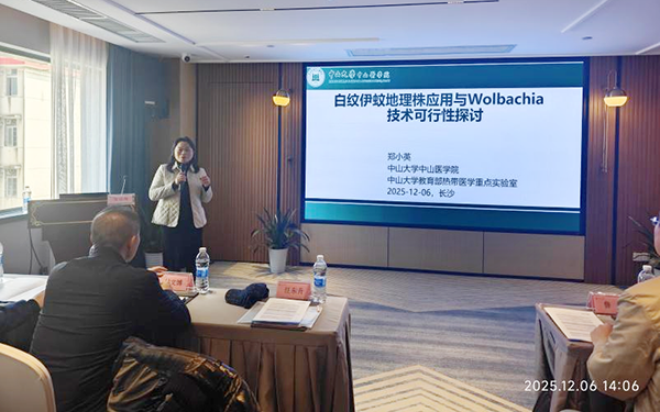 下午的学术报告主要围绕重要媒介蚊虫的防控开展。中山大学中山医学院郑小英教授探讨了白纹伊蚊地理株应用于Wolbachia技术的可行性;清华大学的牛季琛博士介绍了蚊媒病毒在媒介昆虫中一种非经典、EV介导的传播机制;南方医科大学周晓红研究员介绍了白纹伊蚊光周期诱导滞育的实验体系相关研究;中国疾病预防控制中心传染病预防控制所任东升研究员梳理了白纹伊蚊实验动物化的发展历程,分析了当前标准化体系不完善的问题,并提出了未来标准化建设、跨学科合作等发展建议。