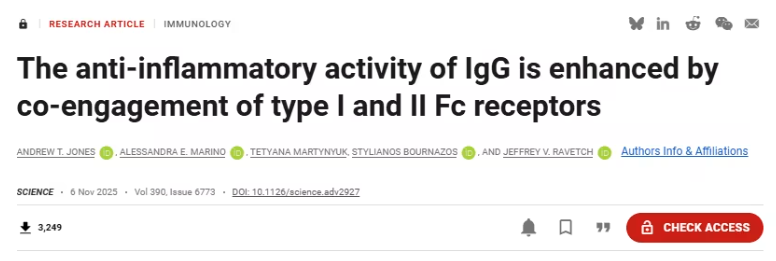 这些发现基于Ravetch实验室40年来对Fc受体的研究。Fc受体是一个存在于几乎所有免疫细胞表面的蛋白质家族,抗体与之结合以协调免疫系统的效应反应。最常见的血清抗体是免疫球蛋白G,它占血液中抗感染抗体的75%——并且是IVIG的关键成分。