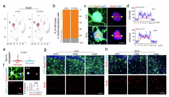 在当前的研究中,研究人员旨在识别与星形胶质细胞衰老和阿尔茨海默病相关的机制,并重点关注Sox9,因为该蛋白是衰老星形胶质细胞中多个基因的顶级调控因子。
