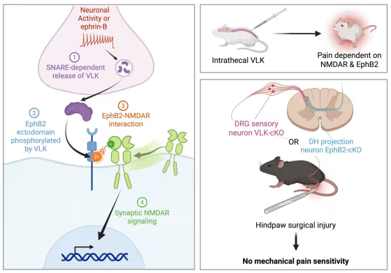研究团队发现,活跃的神经元会释放VLK,随后VLK会增强一种参与疼痛、学习和记忆的受体的功能。当科学家们从小鼠的疼痛感知神经元中移除VLK后,这些动物在手术后没有感受到通常的疼痛,但运动和感觉功能仍然正常。额外添加VLK则产生相反的效果,增强了疼痛反应。