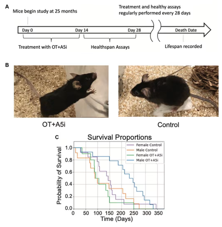 这项研究证实了 OT + A5i 在延长健康寿命方面的巨大潜力,还突出了两性在衰老过程以及对长寿疗法的反应方面存在差异。
