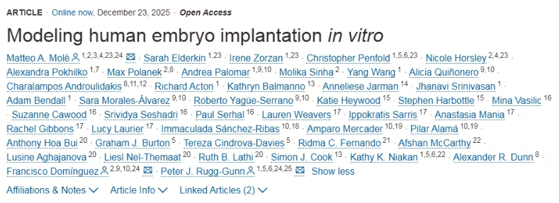 “胚胎植入和植入后发育是隐藏的关键事件,这限制了我们探索背后细胞和分子机制的能力。现在,我们可以见证生命最初时刻未被探索的方面,揭示健康妊娠的建立基础。” 研究共同第一作者、博士后研究员 Irene Zorzan 博士表示。除了还原正常发育过程,该模型还具有广阔的临床应用前景——未来可构建患者特异性模型,分析不育人群的子宫内膜是否存在植入相关的功能缺陷,或测试能提升子宫内膜容受性的药物;对于 IVF 患者而言,这一模型有望帮助筛选最具植入潜力的胚胎,提高妊娠成功率。