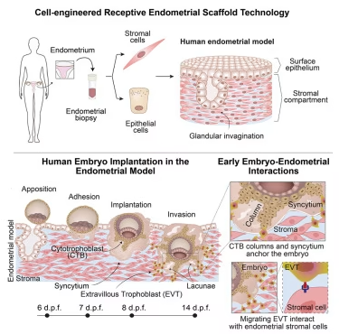 如今,Babraham 研究所与斯坦福大学的研究团队在《Cell》发表重磅成果:他们成功构建了能高度模拟人类子宫内膜的 3D 模型(CREST),首次在体外完整还原了胚胎植入及后续 14 天的发育过程,为破解植入失败、妊娠并发症的起源提供了全新工具。